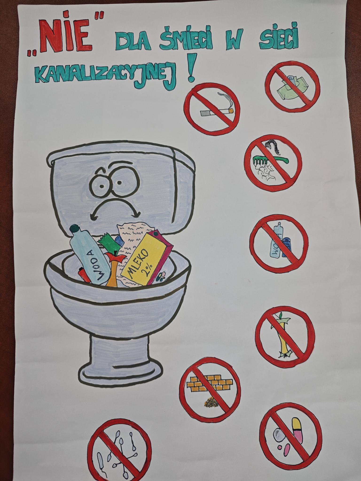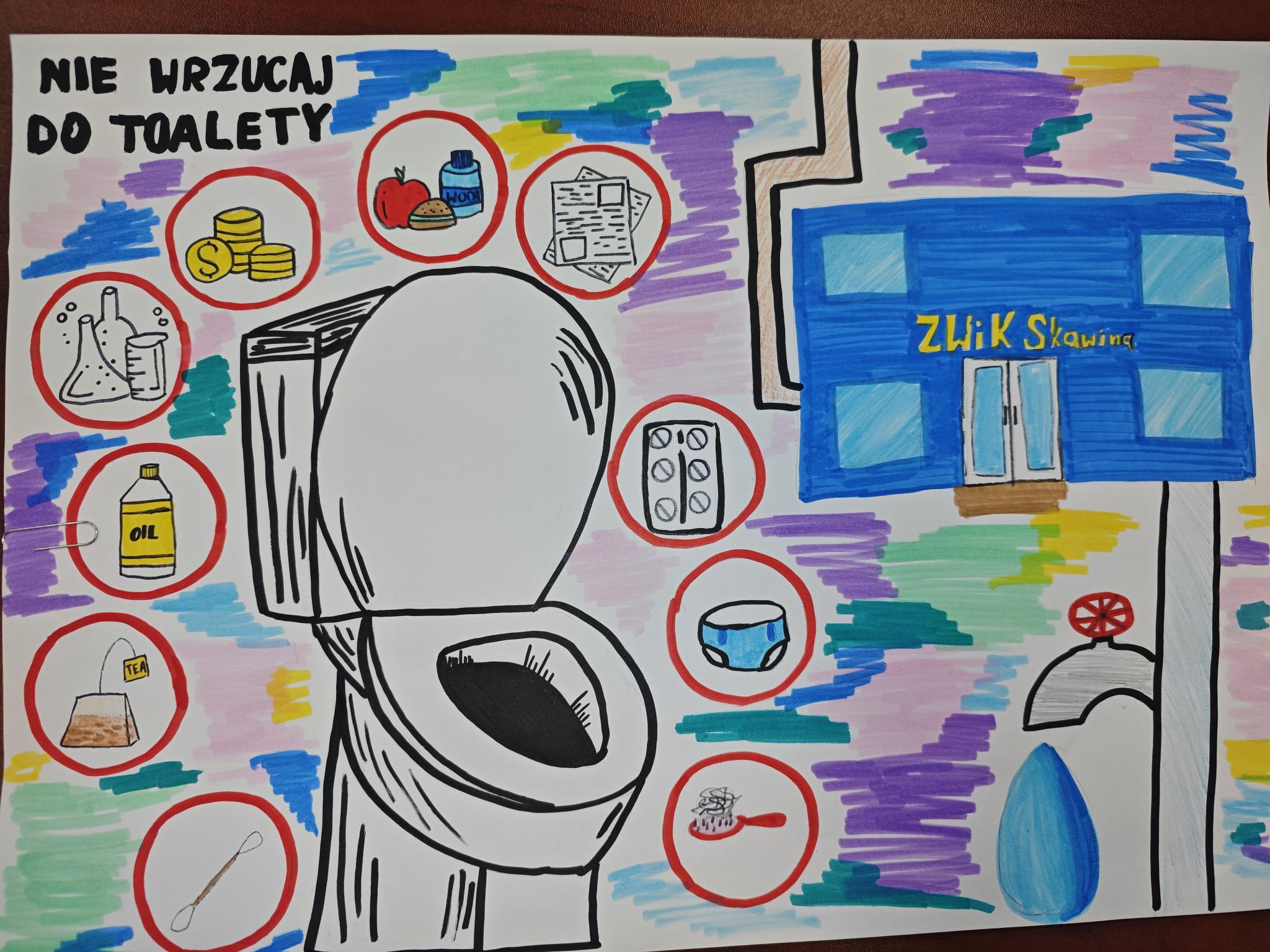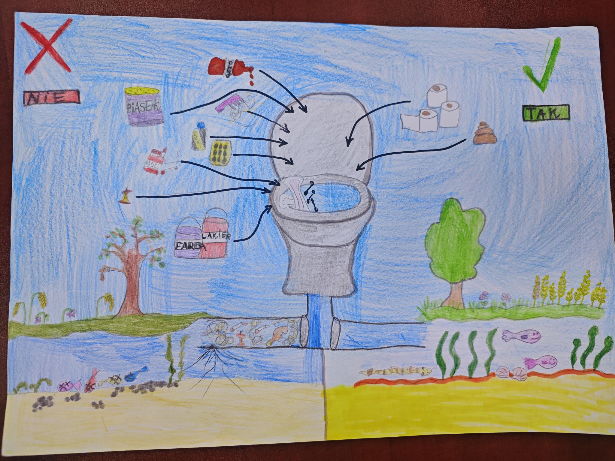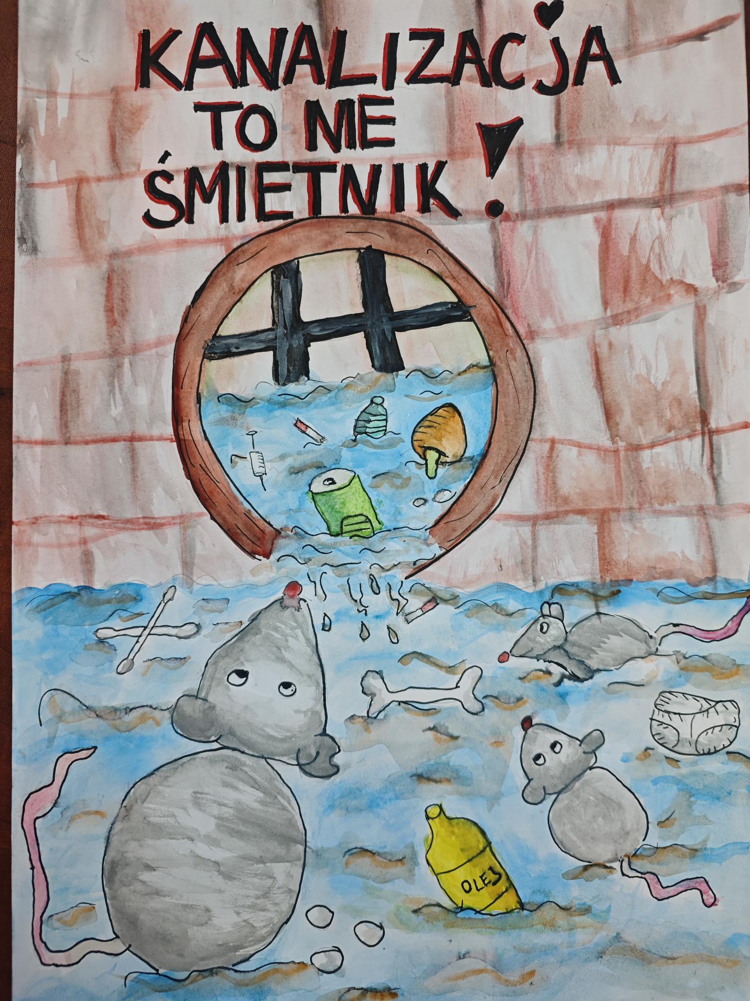 Konkurs plastyczny pt. „Kanalizacja to nie śmietnik”.Konkurs został zorganizowany w dwóch kategoriach wiekowych: